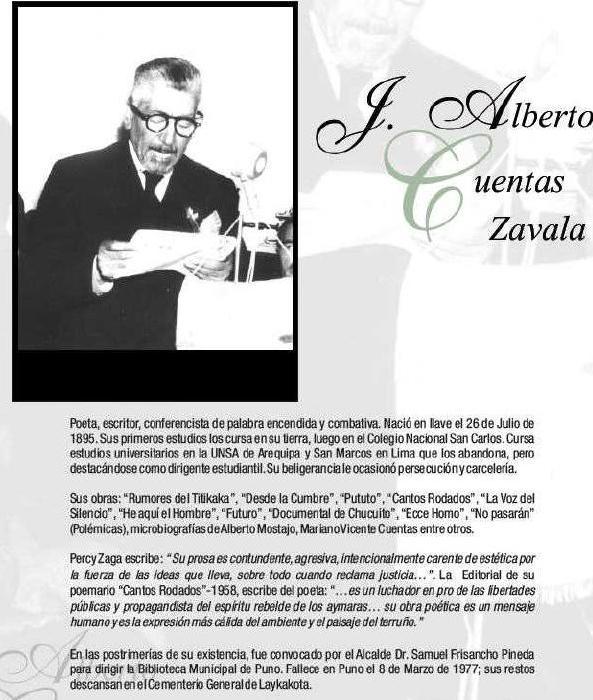 Cuentas Zavala (26 de julio de 1895 - 29 de marzo 1977), nació en Ilave, fue hijo de la dama juleña Sabina Zavala Montero y de Mariano Vicente Cuentas Lazo. Vivió la mayor parte de su vida en Juli.