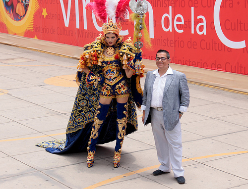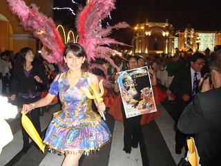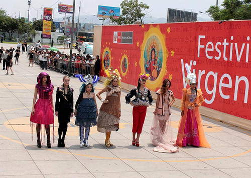 La actividad fue presidida por el ministro de Cultura, Luis Peirano, quien manifestó que Puno es la capital folclórica del Perú que convoca al mundo, y expresó su regocijo por acoger a sus autoridades. Resaltó que la fiesta de la “Mamita Candelaria”, que atrae a más de 100,000 turistas, se replica no sólo en diversas regiones del país, sino también en países vecinos como Bolivia y Chile. Se trata de una celebración con una fuerte influencia de todas las culturas, donde los asistentes cantan y bailan sin parar. “Invito a todos a visitar Puno, será una experiencia inolvidable”, remarcó. Por su parte, el alcalde de Puno, Luis Butrón, sostuvo que la festividad, cuya fecha central es el 2 de febrero y concluye 16 días después, se fortalece a lo largo de los años y “ha sido calificada de una manera justa como la gran explosión de la alegría del Perú”. Butrón agradeció al Ministerio de Cultura por permitir la presentación de esta actividad en Lima, de manera articulada con el gobierno regional, autoridades locales y la Federación Regional del Folclor y Cultura de Puno. Extendió el agradecimiento al Ministerio Comercio Exterior y Turismo (Mincetur) y a la Comisión de Promoción del Perú para la Exportación y el Turismo (Promperú) por su constante contribución. Pasarelas internacionales Desfilaron espigadas modelos con los diseños de Fátima Arrieta, embajadora de la Marca Perú y que ha expuesto en exigentes pasarelas de Francia, México, Estados Unidos y Bolivia. Su colección está inspirada en los mantones puneños, con cintas colgantes y flequillos sinuosos que llevan las mujeres de la región altiplánica. Noé Bernacelli, el diseñador de alta costura más joven del país, presentó un sastre negro con bordados y aplicaciones hechos íntegramente a mano, inspirado en los trajes típicos de Puno y en la ropa de uso diario. Harumi Momota presentó un vestido 100 por ciento alpaca, color azul acero, inspirado en el lago Titicada y en la danza de huaca huaca. Empleó la técnica tradicional del tejido a mano (palitos, crochet y telar). Ella capacita a más de medio millar de artesanos de Puno, Tarma (Junín), Ayacucho, Junín, Loreto, Pasco, Arequipa y Cusco. La diseñadora Meche Correa impresionó con su chaqueta de fiesta típica en terciopelo, llena de lentejuelas y pedrería, fue combinada con un pantalón del mismo material. Amaro Casanova se lució con un traje color rosa con ribetes negros, cuya caída de tul simula el movimiento de la danza puneña. La periodista japonesa Emi Sumigtawa, a quien le apasiona el diseño, también desfiló. Viaja a diferentes países para mostrar la diversidad cultural de cada uno de ellos. Finalmente, el diseñador peruano Miguel Valdivia mostró un traje inspirado en el traje de la Virgen de la Candelaria y en la diablada de los ángeles guerreros. El público congregado en el frontis del Ministerio de Cultura se deleitó además con el desfile de varias agrupaciones que bailaron las danzas puneñas como diablada Bellavista, morrada Laykakota y caporales. Alrededor de 500 danzantes derrocharon alegría, arte y color. Clic aqui para ver un video Moda y Candelaria 2013 La fiesta de la Candelaria en Lima El pasado 25 de enero se llevo a cabo la realización del lanzamiento de una de las festividades más importantes a nivel nacional: la fiesta de la Virgen de la Candelaria, fiesta que se realiza durante los meses de febrero. Dicha celebración tuvo lugar en el frontis del Ministerio de Cultura, en el cual diversas agrupaciones hicieron gala del folklore peruano.