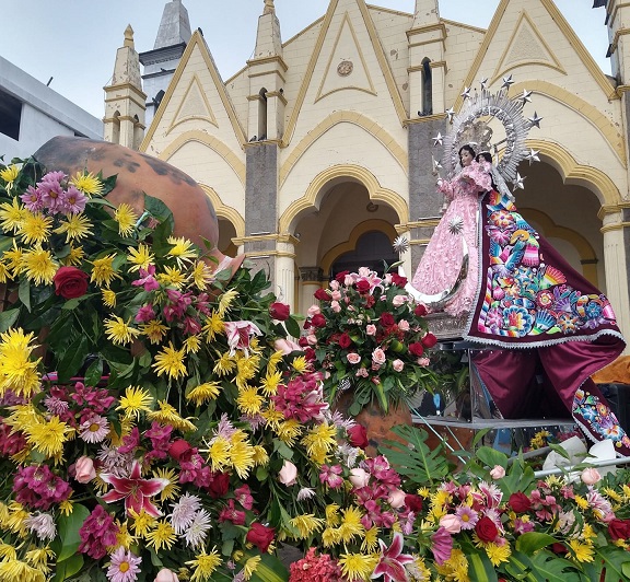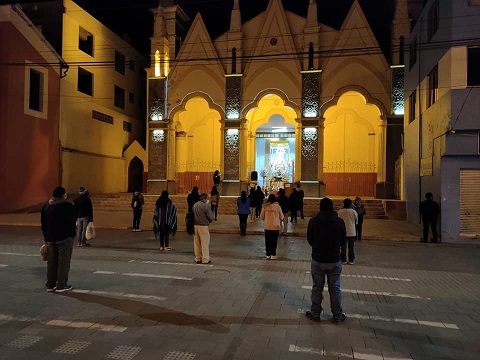 Semanas después, el Gobierno del Presidente Vizcarra declaraba que el Perú ingresaba en emergencia sanitaria, debido a los altos contagios y muertes por COVID 19, se veía y oía noticias provenientes de España e Italia, así como de Ecuador y Brasil, países muy golpeados por esta enfermedad y se apreciaba la muerte de miles y miles de persona diariamente, Puno adquirió sus primeros contagios en el mes de Abril de dicho año, pero se leía, veía y escuchaba las tragedias que enlutaban al país con las muertes de cientos de peruanos que fallecían diariamente en los departamentos de Lima, Loreto, Arequipa y es así que en los meses de agosto y setiembre del 2020, la ciudad de Puno llega a tener cientos y cientos de contagios a diario, dejando en colapso, las camas uci, así como los Hospitales de la ciudad, se notó además la falta de Oxígeno para el tratamiento de los enfermos contagiados, ante ello el Obispo de Puno Monseñor Jorge Carrión junto con el Párroco del Santuario de la Virgen María de la Candelaria, entre otras acciones de solidaridad, ofrecen misas de salud virtuales y la imagen de nuestra Patrona de Puno sale al atrio del Santuario a donde muchísimos fieles a su paso por el Parque Manuel Pino, guardando el distanciamiento, se aproximan a la Madre de Dios a ofrecer sus ruegos y plegarias, para la protección de sus familiares y demás seres queridos que se encontraban amenazados y enfermos con esta enfermedad que conducía a la muerte, encomendando que sean guardados, cubiertos y protegidos en el manto de nuestra madre; muchas familias vieron fallecer a sus padres, hijos, abuelos tíos, nietos, amigos, en sus propios domicilios, muchos no pudieron despedirse de sus seres queridos y darles el último adiós, porque al haber fallecido hospitalizados, eran trasladados directamente al cementerio e incluso enterrados sin la presencia de familiar alguno por temor al contagio, lo cual ocasiono sufrimiento, pena y dolor en los puneños, ya que como en todo el mundo nosotros despedimos a nuestros seres queridos fallecidos con velorio, misa de cuerpo presente, traslado en hombros por las calles de nuestra ciudad, entre discursos y oraciones, pero todo esto muchos no pudimos hacer a nuestros seres queridos que se fueron en pareja, dejando huérfanos a hijos menores y aun con la enfermedad, o que de una familia fallecían hasta 3 o cuatro de sus miembros, las redes sociales a diario anunciaban la muerte de 20 o 25 personas fallecidas, todo esto, dejaba profunda pena y tristeza, sumía en abandono a menores, esposos y esposas, los vecinos comentaban las muertes trágicas de sus vecinos, con mucha pena nos enterábamos de la hospitalización de un familiar o amigo que era sinónimo de muerte, ni que decir de quienes eran entubados, pero también muchas familias, lograban encontrar la alegría cuando su familiar retornaba vivo luego de estar hospitalizado o aislado por el tratamiento de la enfermedad en su propio hogar, es así que a diario llegaban ofrendas florales a la madre de Dios, formando así a sus pies jardines de flores; es así que es programada una primera procesión extraordinaria de la imagen de la Virgen María de la Candelaria, la que cubrió zonas de Azoguini, Orkapata, Laikakota, Las Torres, Salcedo, Av. Sol, La Universidad, Yanamayo, Totorani, Huascar entre otras a la que los fieles desde sus azoteas e incluso los mismos se acercaban a la movilidad que trasladaba la imagen de la Virgen María de la Candelaria, implorando protección, salud, sanación.