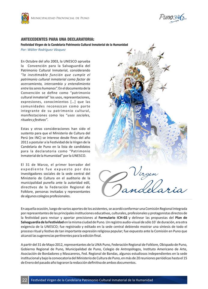 FELA FESTIVIDAD DE LA VIRGEN DE LA CANDELARIA HA SIDO DECLARADA PATRIMONIO CULTURAL INTANGIBLE DE LA HUMANIDAD POR LA UNESCO.