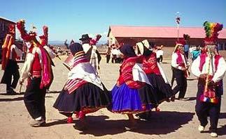 Desde el 25 de Julio de cada año hasta el 5 de agosto, se inicia con la FIESTA DE SAN SANTIAGO Y LA TRADICIONAL �FERIA ARTESANAL�, en donde cantan y bailan los Comuneros de Taquile, donde se Danza Sicuris de Taquile, Negritos de Taquile o Candelaria, Cinta K´ana y Carnaval de Taquile; su música con instrumentos de viento como pinquillos, zampoñas, etc; con instrumentos de percusión como el bombo, la tinya y el tambor. |