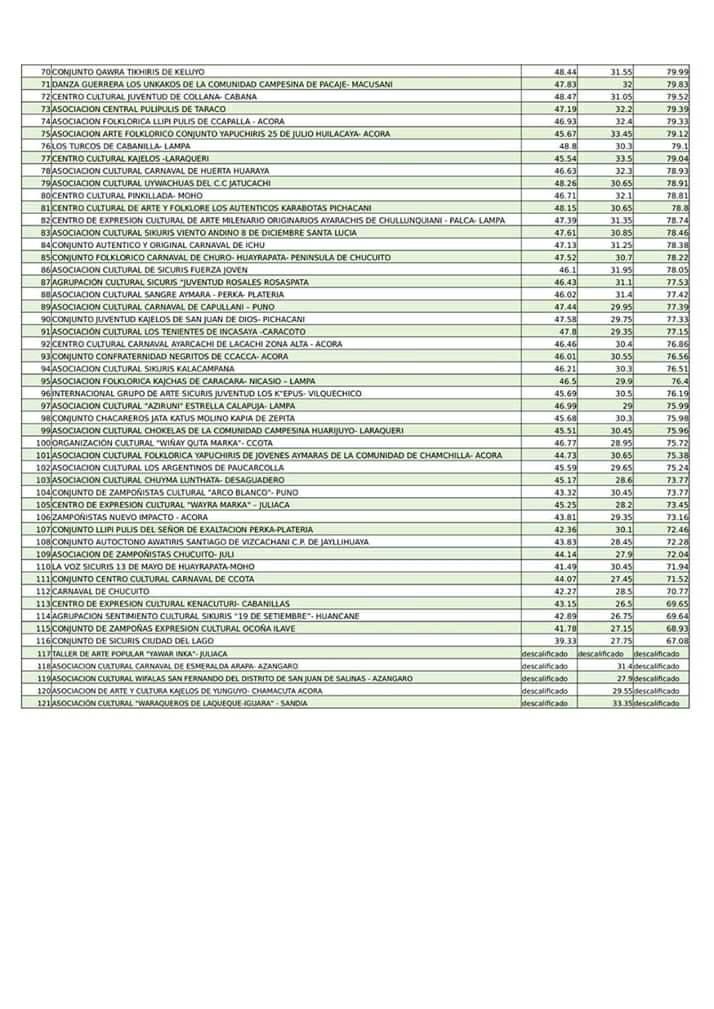 46 ASOCIACION CULTURAL CARNAVAL DE ESMERALDA ARAPA- AZANGARO 80.30