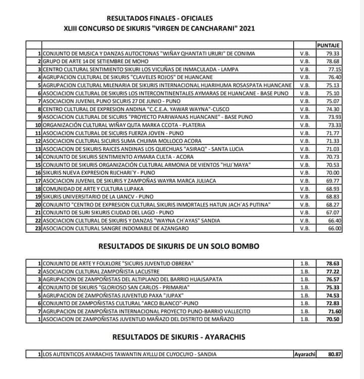 XLIII CONCURSO DE SICURIS: VIRGEN DE CANCHARANI 2021.