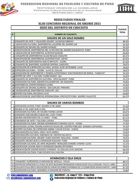 RESULTADOS DEL CONCURSO REGIONAL DE SIKURIS 2016